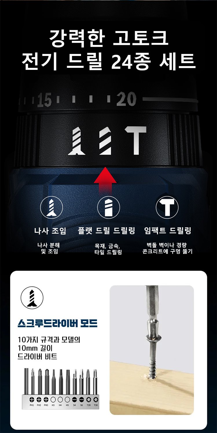 강철 막대 쉽게 뚫는 전기 드릴 24종 세트