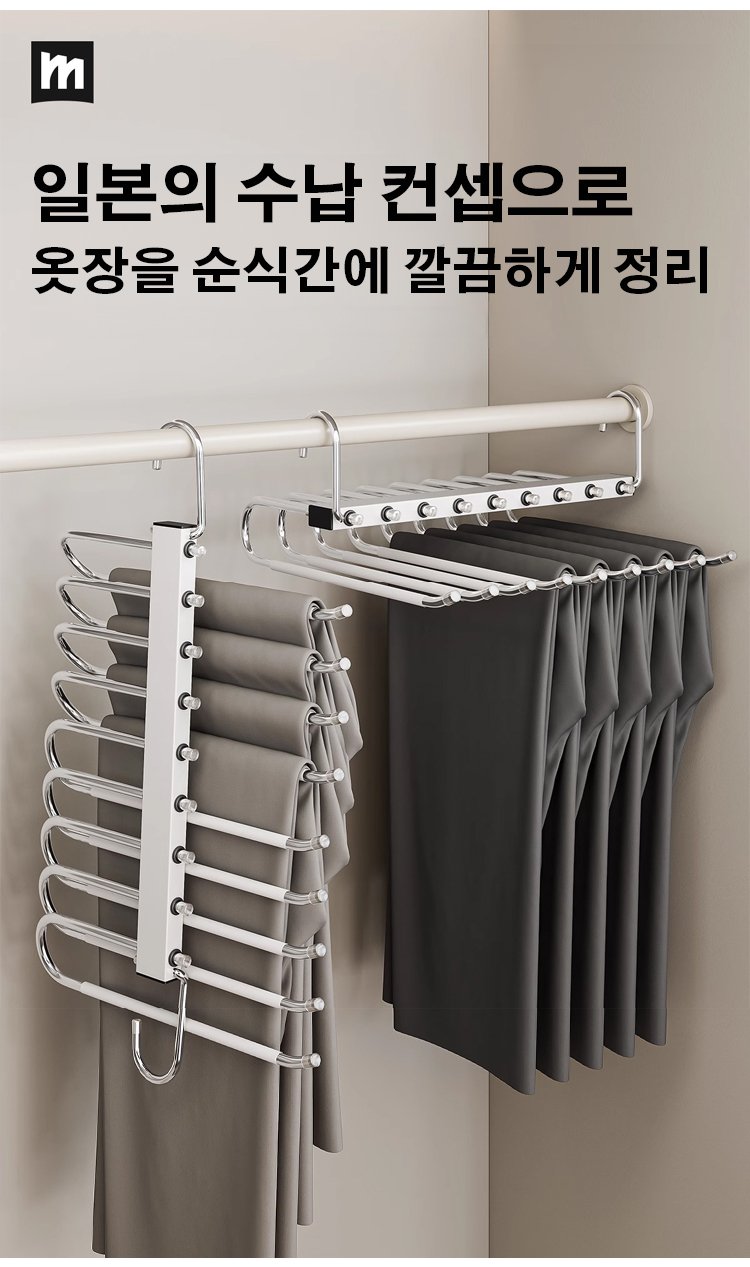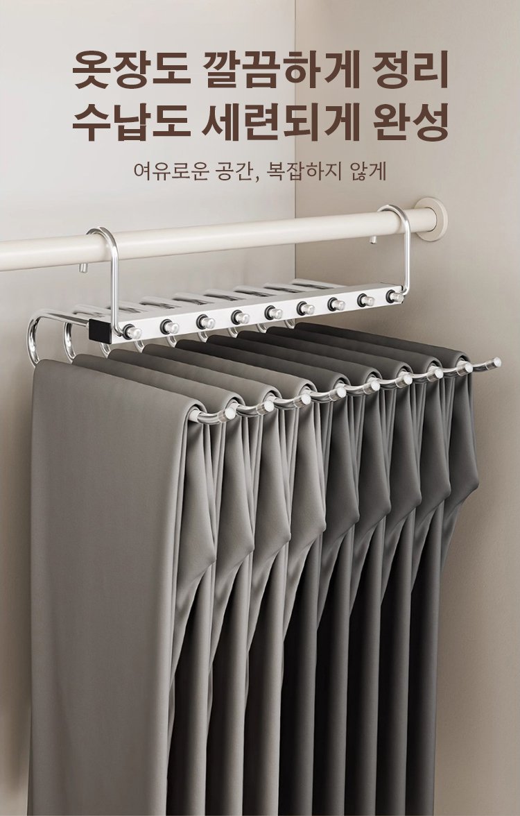 ✅한국 유명 수납 생활 브랜드가 서울 의류 디자인 팀과 공동 개발!✅모든 바지를 한눈에 볼 수 있어 입고 싶은 바지를 가볍게 당기면 꺼낼 수 있습니다!✅가로와 세로 모두 사용 가능해 공간을 절약하고, 쉽게 꺼낼 수 있어 바지가 더 이상 주름지지 않습니다!