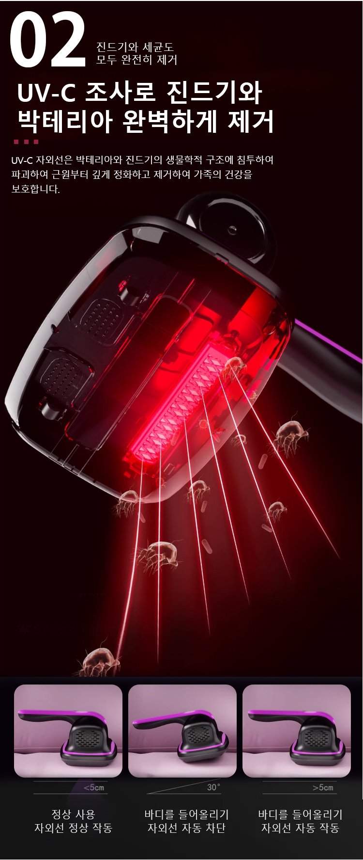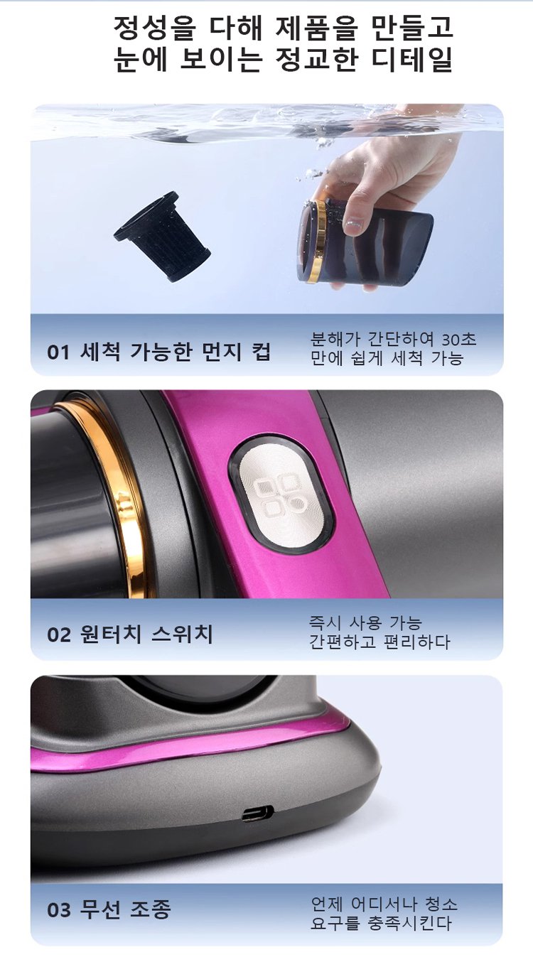 자외선 집먼지 진드기 제거 무선 진공 청소기